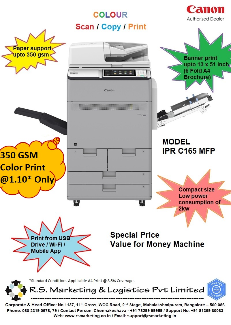 R.S.Marketing and Logistics are the best Dealer in South India for Canon Printers.