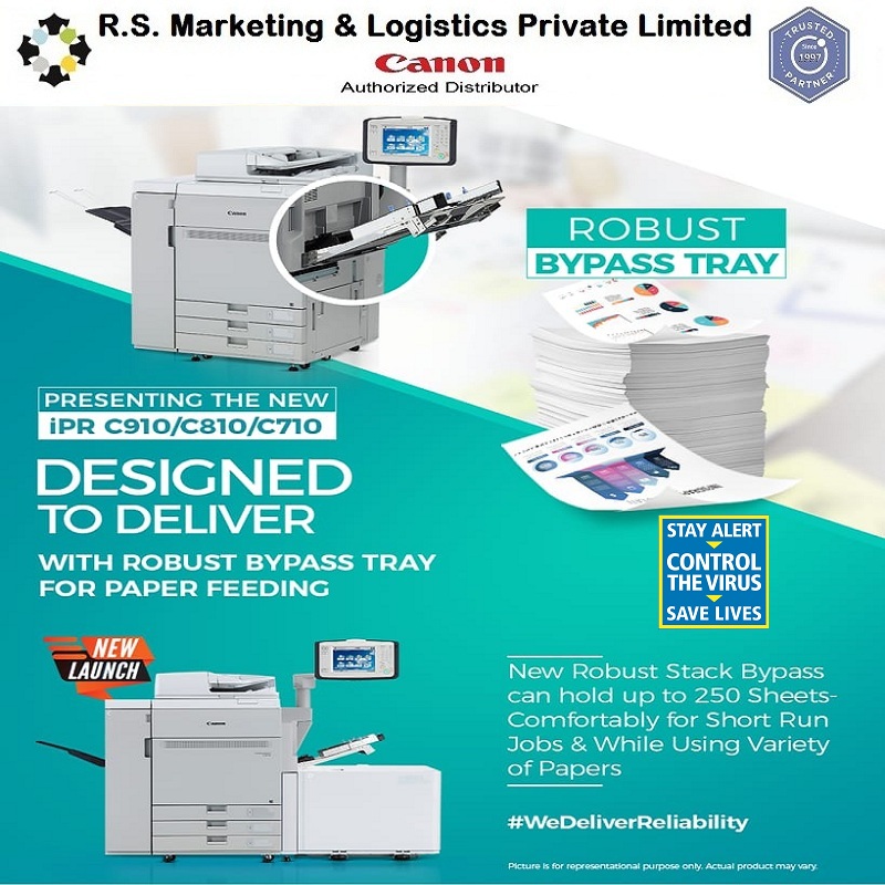 ImagePRESS C710 Digital Printing Machine R.S.Marketing and Logistics are the best dealer in South India for Image PRESS C910/C810/C710. The innovative imagePRESS C910 series is designed to meet all the challenges of the color printing market Ideal for busy CRD and GA environments, the imagePRESS C910 Series combines great image quality with powerful productivity to create a rich and innovative application for a wide range of media. A powerful and versatile colour light production printer Automatic duplex printing up to 350gsm Print speed (A4): iPR C910: Up to 90 ppm iPR C810: Up to 80 ppm iPR C710: Up to 70 ppm